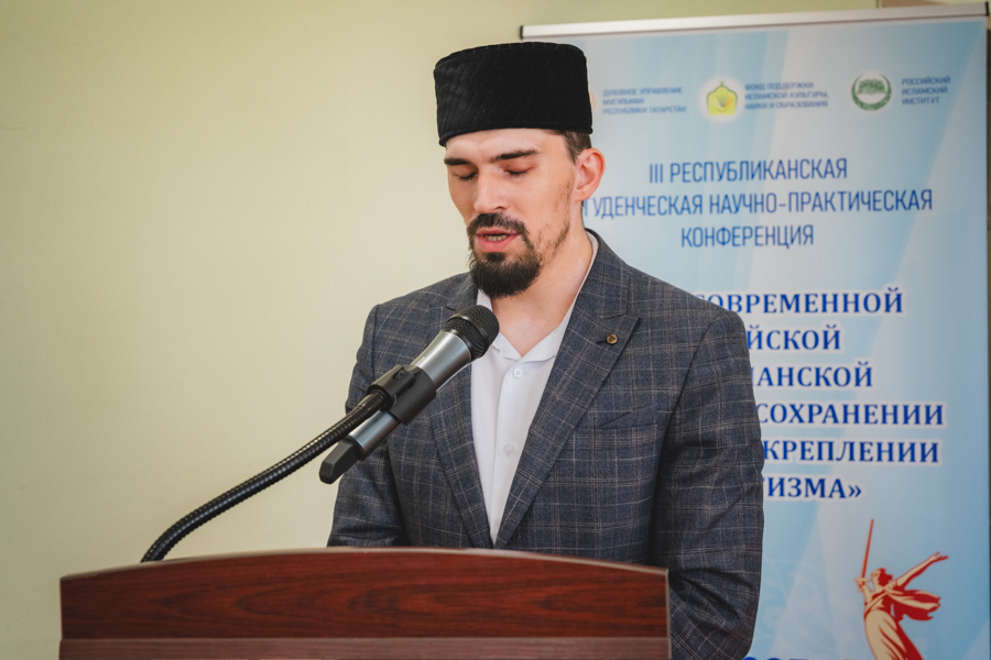 Татарстан Мөфтие Камил хәзрәт Сәмигуллин исеменнән сәламләү сүзләрен аның беренче урынбасары Илфар хәзрәт Хәсәнов җиткерде: “Бүген 100дән артык студент үз чыгышларын җиткерәчәк! Сез бик күп актуаль сораулар күтәрәсез: татар дини мирасыннан алып мөселманнар тормышында ясалма интеллект аспектларына кадәр. Темаларның мондый төрлелеге һәм киңлеге безнең өммәтебезнең чәчәк атуын, заман белән бергә үсүен һәм шул ук вакытта традицияләрне саклавын күрсәтә, һәм иң мөһиме – Ватанга ихлас мәхәббәт тәрбияли. Сезнең чыгышлар һәм тикшеренүләр ярдәмендә без әйләнә-тирә чынбарлыкка Сезнең караштан карый алабыз”.