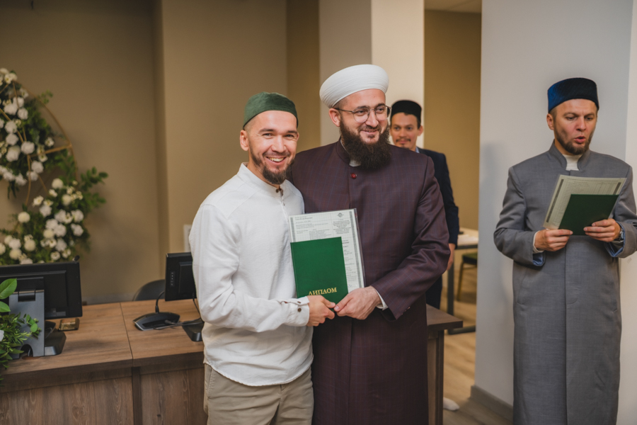 Булачак имамнарга һәм абыстайларга дипломнар тапшыру тантанасында мәдрәсә җитәкчелеге, укытучылар, остазлар катнашты, алар чыгарылыш шәкертләренә һөнәри эшчәнлеккә керешкәндә иң изге теләкләрен җиткерде.