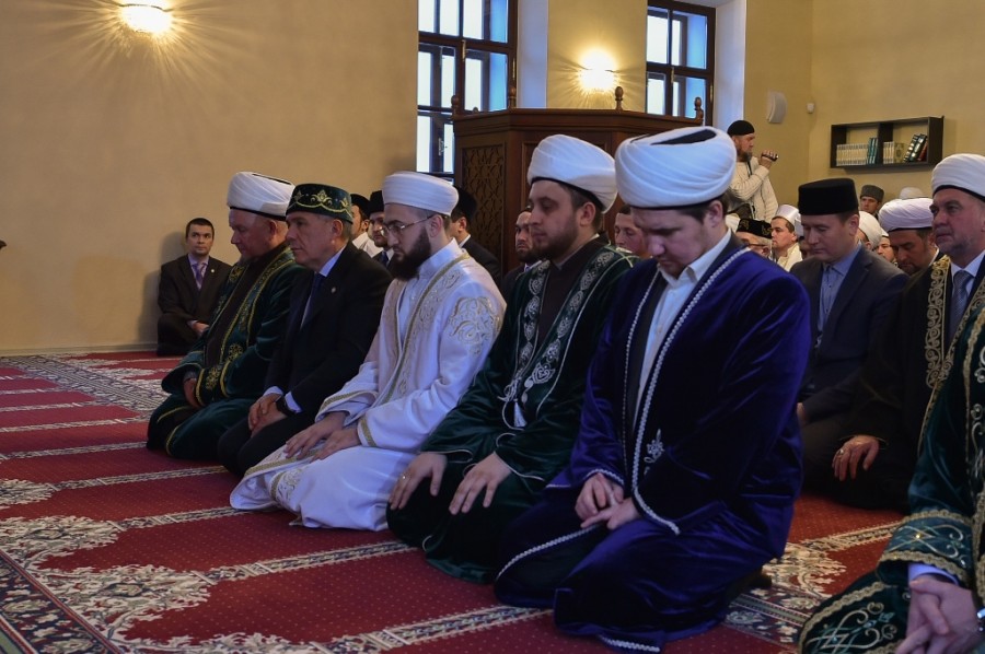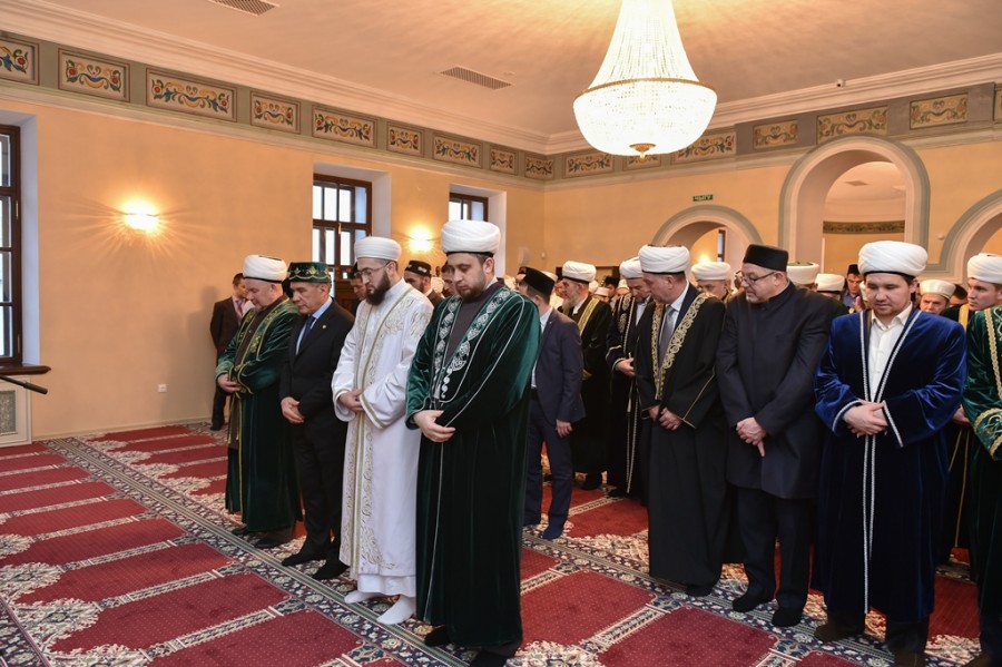 Кунакларның чыгышыннан соң, Татарстанның баш казые Җәлил хәзрәт Фазлыев мәчеткә бәрәкәт, шәһәр халкына иман нуры биреп торучы үзәккә әверелүен сорап дога кылды,тәкъбир әйтелде. Кунакларга ТР МДН эшләгән “Галиев мәчете. Яңарыш тарихы” дип исемләнгән махсус китаплар таратылды. Соңыннан бәйрәм намазы булды.