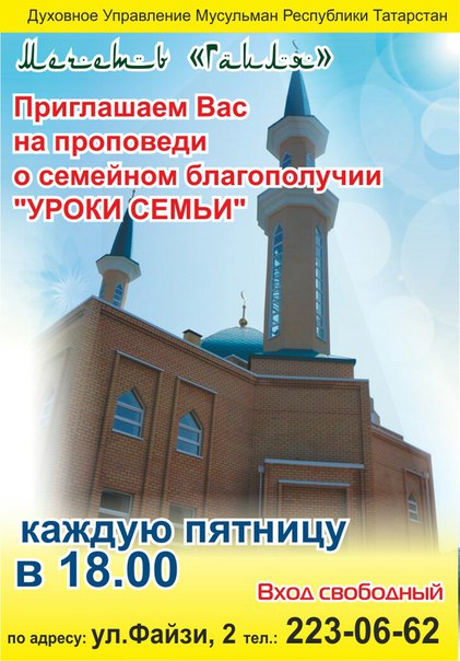 Һәр атнаның мөбарәк җомга көнендә кичке сәгать кичке алтыда Гаилә мәчетендә "Гаилә дәресләре...
