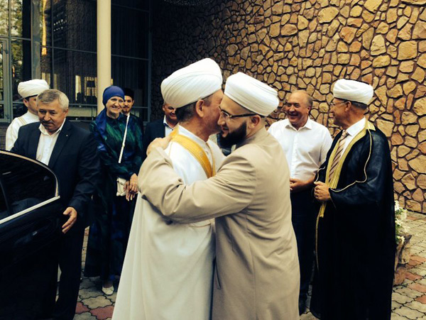 Здесь он выступил с поздравительной речью и от имени ДУМ РТ преподнес памятные подарки губернатору области Валерию Шанцеву.