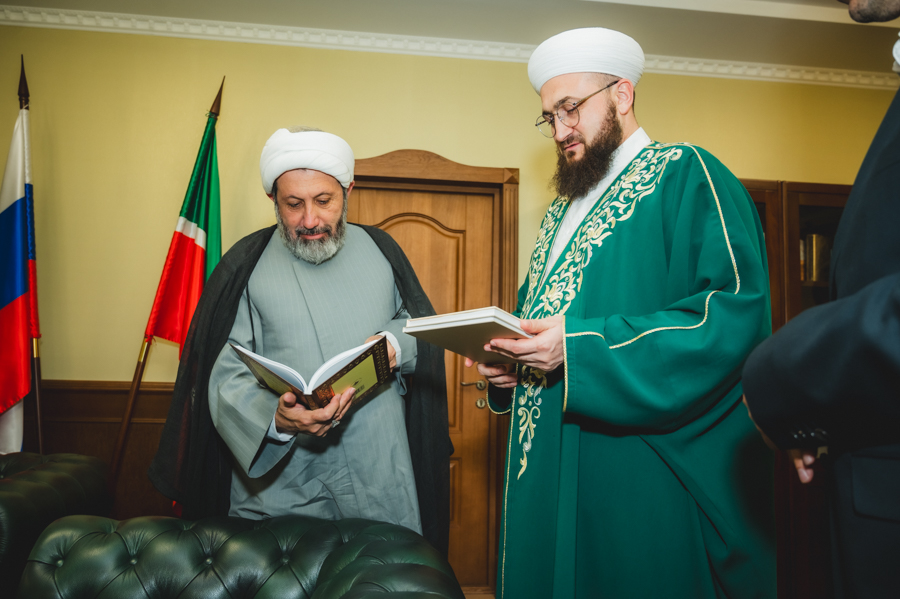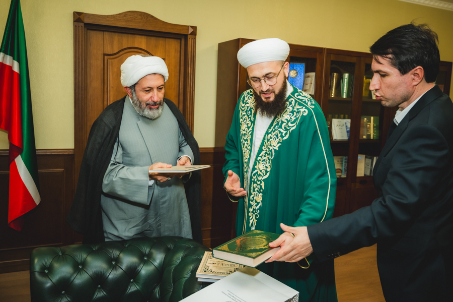 В память о встрече Муфтий подарил гостям издание Куръана «Казан басмасы» и книги на арабском языке ИД «Хузур» ДУМ РТ.