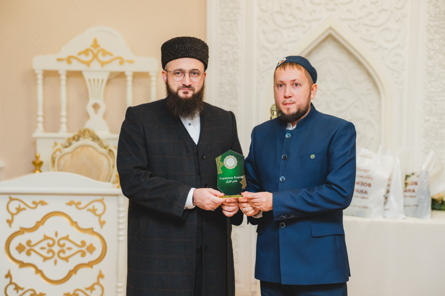 Руководитель Центра подготовки хафизов Куръана Абдурашид хазрат Фаизов отметил, что Муфтий Татарстана Камиль хазрат внес большой вклад в развитие коранических наук в республике и стране. Он также напомнил, что в настоящее время в Муфтияте Татарстана готовится рукописный Куръан ДУМ РТ. В знак благодарности за его труды, он вручил Муфтию Камилю хазрату премию «Служитель Корана». Среди первых лауреатов этой премии были также Рафик Мухаметшин и Ильяс Гимадов.